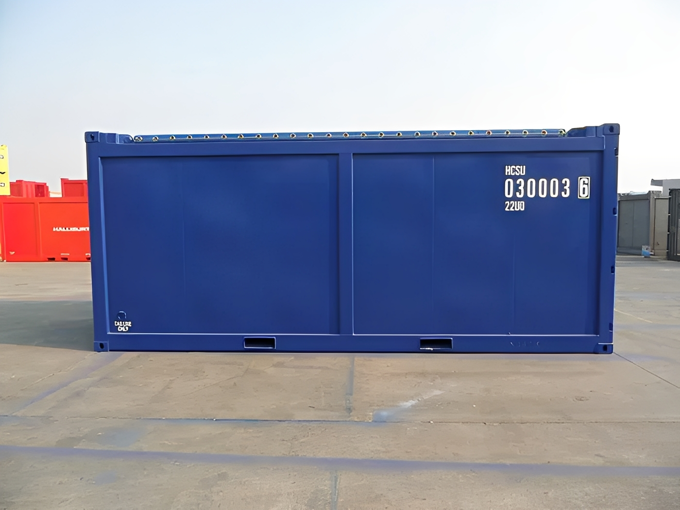 The 20ft Open Top Offshore Container is designed for heavy-duty offshore use, offering maximum flexibility for transporting oversized or irregular cargo. This model, unlike standard containers, has no fixed steel roof, so cranes or lifting equipment can easily load and unload goods from above. For secure storage and transport, a durable tarpaulin and roof bows protect the cargo in each container.