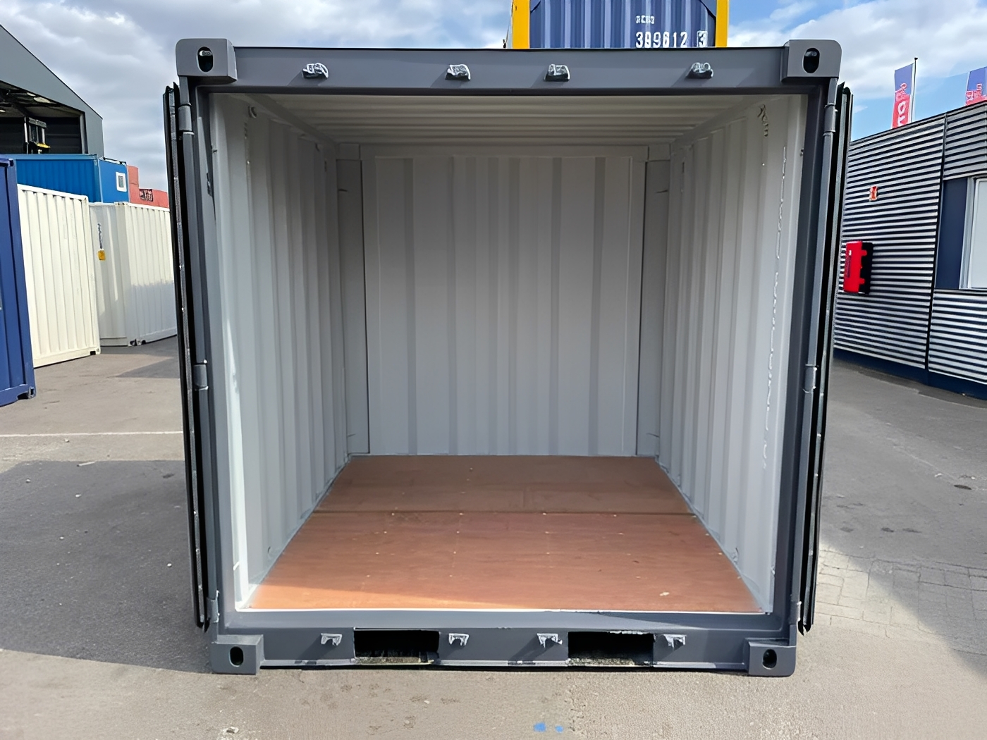 Designed for easy handling and placement, it features standard air vents for airflow, high handles for convenience, and a lockbox for enhanced security. The container is available with either a plywood floor or steel floor, ensuring suitability for a variety of storage needs.
